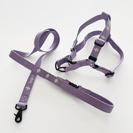 コットンリリーハーネス+リーシュセット リリー プラムxホワイト
